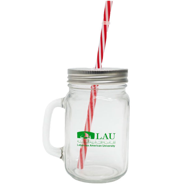 Mason Jar Glass With Handle And Straw
